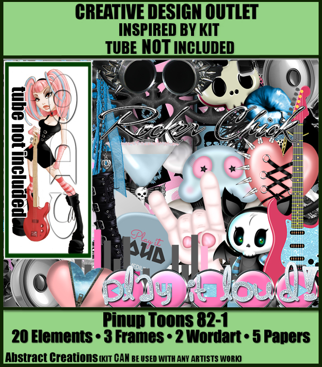 I have more goodies from Abstract Creations kits!!! This time, I played with a kit that was Inspired By PinupToons tube 82-1 :) This rockin' kit is just perfect for those tubes with attitude!!