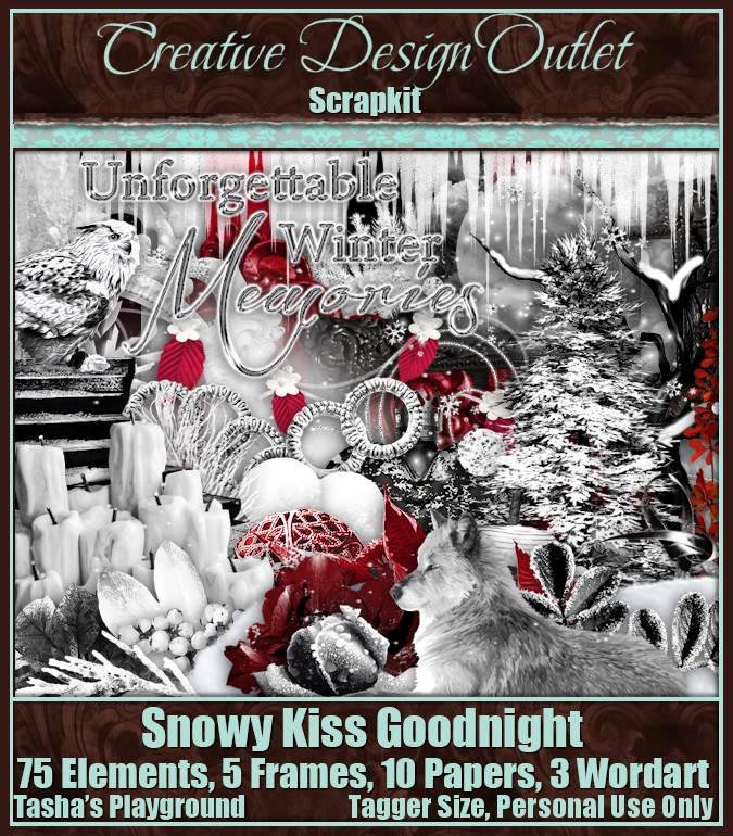 Tasha has re-released her stunning kit Snowy Kiss Goodnight - the beauty of a winter's walk with the one you love is magical - the snow topped trees, the icicles hanging from the eaves, all add to the enchantment of the cool night air, the frost as it gets colder and colder.